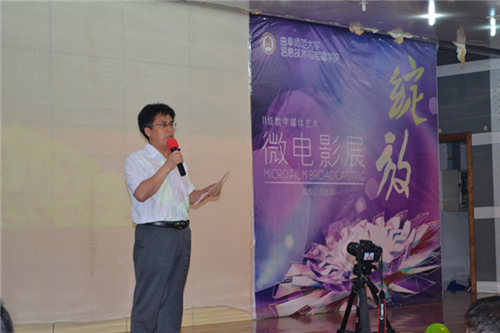 “微力无边,映像无限”。6月21日晚7:00,信息技术与传播学院11级数字媒体艺术微电影展于图书馆报告厅成功举行。信息技术与传播学院院长马秀峰,副院长胡凡刚,党总支副书记肖龙航,团总支书记、2013级政治辅导员刘蓉,2011级政治辅导员李兴以及微电影指导老师董从斌等学院专业课教师出席了展播活动并和现场观众一同观看了影片。