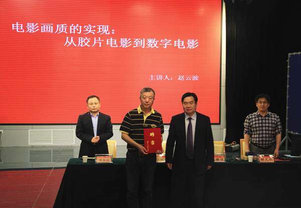 2016年5月12日下午,山东电影制片厂创作室主任、一级摄影师赵云波先生兼职教授聘任仪式暨“电影画质的实现:从胶片电影到数字电影”学术讲座在我院演播厅举行。日照校区管委会主任助理、日照校区管理办公室主任池福安出席仪式并为赵云波先生颁发兼职教授聘书。聘任仪式由老王论坛