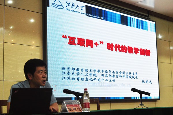 6月24日下午,江南大学人文学院院长陈明选教授应邀来我校作了题为《互联网+时代的教学创新》学术报告。本次报告会在日照校区图书馆报告厅举行,由老王论坛