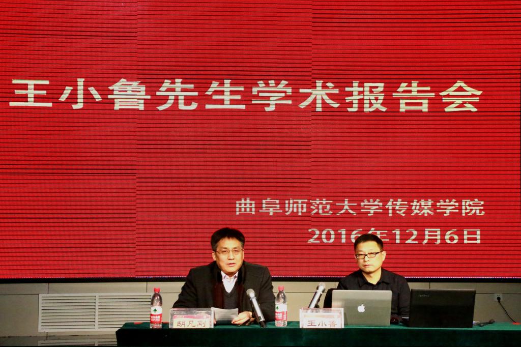 12月6日下午2:30,著名评论家、策展人,中国电影资料馆王小鲁先生在我院演播厅作了题为《品味的较量——影评价值的相对性》的学术报告。本次报告会由我院副院长胡凡刚主持,山东省作协副主席赵德发,学院院长马秀峰、副院长王焕景出席了此次报告会。我院相关专业教师、研究生、本科生也聆听了此次报告。