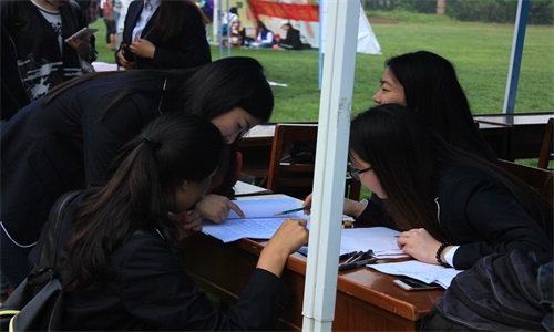 运动会气温不断升高,同学们仍然卖力地为运动员们呐喊助威。桌子上堆满了厚厚的加油稿,工作人员进行筛选,交至广播处进行广播,为运动员们呐喊助威。赛场上赛事紧张,工作人员认真负责,赛场赛下的默契配合为我院取得优异成绩打下坚实基础。