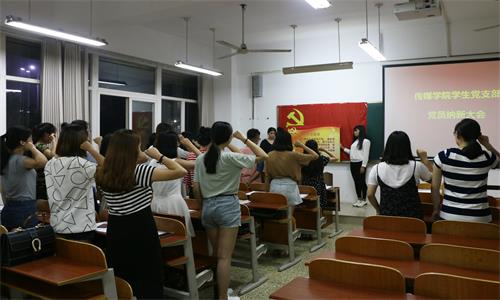 纳新结束后,全体预备党员面向党旗,庄严宣誓:“我志愿加入中国共产党,拥护党的纲领,遵守党的章程,履行党员义务,执行党的决定,严守党的纪律,保守党的秘密,对党忠诚,积极工作,为共产主义奋斗终身,随时准备为党和人民牺牲一切,永不叛党。”