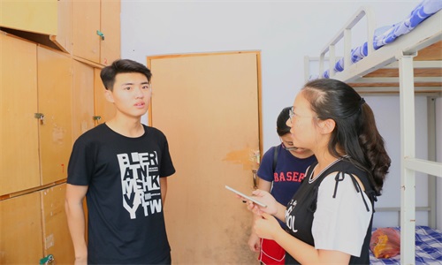 在东升园,大多数新生正与父母一起整理宿舍,当问起一位省内新生来到大学后的感受与未来规划时,他回答道:“对于大学生活是很期待的,最关注的还是即将到来的军训。以后想多参加社团活动,丰富自己。”他的父母在对我院的迎新工作给予肯定后也表示:“对他的期望是全方面的发展,学习是一方面,但是社团和本专业之外的东西都可以学习。军训也可以使体质与意志得到锻炼,挺好的。希望他能快速融入‘新家庭’。”每间宿舍的同学,大都来自不同的城市,但如父母们所期望的那样,他们很快便熟络了起来,融入了新的“大家庭”。