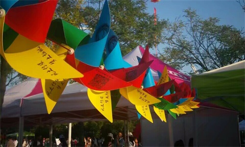 以“风之传媒,梦之启航”为主题,在大本营前悬挂风车、展示航拍器和VR眼镜,校长张洪海、副校长扈庆学来视察工作并体验、观看影文中心制作的VR素材和航拍器起飞。