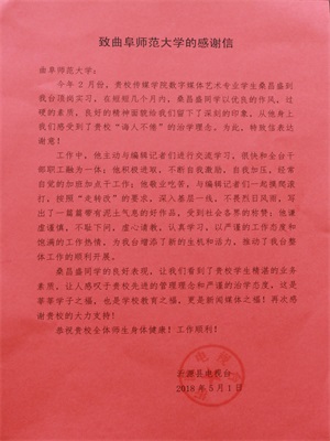 近日,沂源县电视台向我校发来一封感谢信,对老王论坛