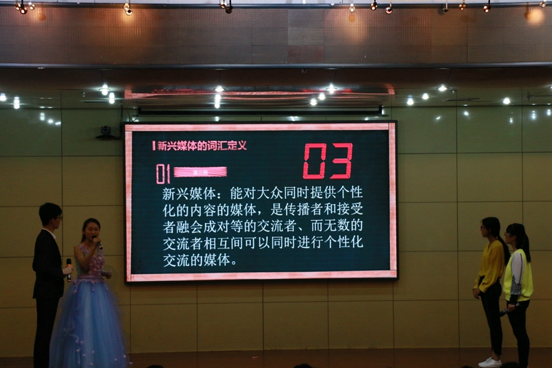 本次竞赛是由初赛中脱颖而出的六支队伍参加,分别是风之彩队、Fighters队、继网开来队 、keep running队、666队和才高十里队,共有抗干扰记忆、抢答PK、辩论赛、附加赛四个比赛环节。其中抢答PK环节各队高手如云,比分紧追不舍,赛况激烈。辩论赛环节更是难分高下,选手们巧舌如簧、据理力争维护自己观点,赢得全场一片喝彩。此外,在比赛过程中还穿插着歌曲演唱《小幸运》、小品表演《纯闺蜜》以及观众答题送福利等环节。动听的歌声让观众们融入其中,并随之一起哼唱;小品中男女的精彩对话则引起台下的一片笑声,活跃了现场气氛;观众答题送福利环节更是调动了观众们的热情,将全场气氛推向了新的高度。