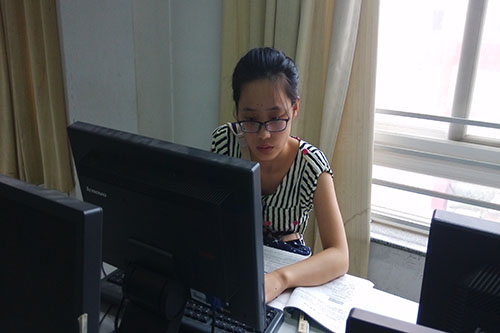 比赛现场气氛肃静,参赛选手们专心致志按照要求完成比赛内容,丝毫不受监考老师及完成比赛后离场同学的影响。