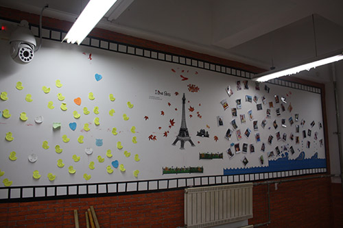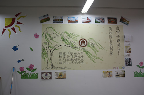 各个班级别出心裁,对教室进行了精心装饰。其中,JA101为2015级教育技术学一班负责的教室。他们采用电影胶片的形式,展现专业特色,鲸鱼形状的照片墙展示了2015级教育技术学一班同学们的风采,同时利用鲸鱼品行善良、团结集体的寓意,展示班级精神,一张张照片为班级营造出了暖心之感。同学们还将自己的心愿写在便利贴上,贴在了教室的后墙,时时刻刻进行勉励,提醒大家不断奋进。在此次教室装饰中,各个专业充分展现了专业特色,比如新闻专业负责的教室中出现了“新闻人誓词”,同时悬挂报纸供同学们学习;数字出版专业的教室有全班同学去北京学习时的班级合照等等。另外,有的班级在装饰中增添了孔子画像,体现曲园人对儒家文化的传承;有的教室将校训贴在后墙上,时刻提醒同学们要秉承“学而不厌 毁人不倦”的曲师精神;有的教室在装饰中加入老王论坛