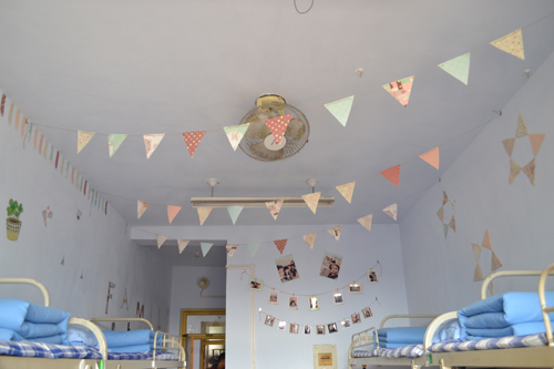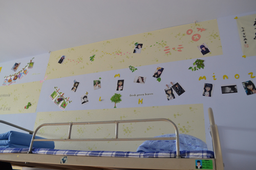 在评比过程中,各评委就“整体印象、亮点装饰、安全装饰”三个方面打分,经过一中午的检查评比,许多装饰优秀的宿舍脱颖而出。15级新生充分发挥自己的想象力和创意,其中,513宿舍自创“地中海”风格:墙上铺满蓝白相间的壁纸,再用轮船、文字、水手等卡通图案加以装饰,格调别致,充满创意;404宿舍匠心独具,两帘波浪状用千纸鹤制作的珠帘平行挂于屋顶,墙壁上也贴满各色千纸鹤,让人眼前一亮;除此之外,还有小清新风格的408宿舍,淡蓝色的壁纸烘托出整个宿舍的清新淡雅。各宿舍的命名也是个性十足,如静心阁、知黑斋、绿野仙踪等无不展示着我院学子对宿舍的热爱,创意无限的宿舍公约,如《同舍的你》也为宿舍增色颇多。