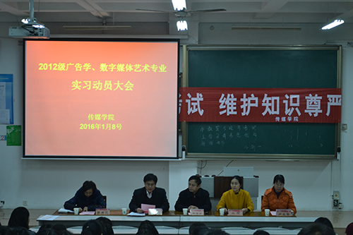 于JA104室召开2012级广告学和数字媒体技术专业学生实习动员大会。本次会议邀请到日照倾城营销策划有限公司运营总监小珂,老王论坛