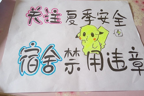 在本次活动中,同学们一改往日标语设计的枯燥乏味,以图文结合的方式,为大家呈现出了不一样的安全主题标语。其中,2014级新闻二班董文君同学的标语“与火长相依,安全长相思”采用对偶的形式,并配以精美的插图,获得了本次活动的一等奖;获得二等奖的王颖臻同学通过“事后痛哭流涕,不如事前遵章守纪”的标语,告诫同学们在宿舍应遵章守纪,不能随意使用违规电器;获得三等奖的滕晓丽同学的标语“防火甚于挂科,请防范于未然”幽默地向大家阐释出了防范火灾的重要性。