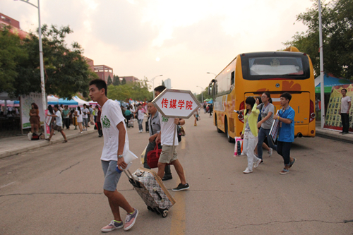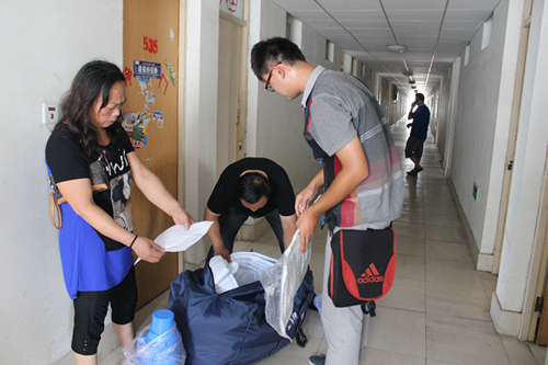今年我院的宿舍楼被安排在四楼、五楼等较高的楼层,迎接新生的工作人员不怕劳累,主动的帮新生搬行李,宿舍园区内分发被褥等物品的工作人员细心地为新生们分发物品。在带领新生以及家长到宿舍的途中,工作人员耐心的解答家长、新生们的疑惑。宿舍内,家长为孩子整理床铺,画面十分温馨。学生处副处长、学生工作办公室副主任徐正伟一行也来到传媒新生宿舍,检查宿舍卫生设施条件,视察迎新工作进程。在对待迎新问题上,传媒工作人员没有丝毫懈怠,工作严谨细致,相互协调配合,使迎新工作顺利进行。