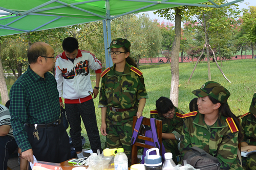 不同于往年军训,今年军训期间的天气总是阴沉沉的,还不时伴有淅淅沥沥的小雨,但是校院领导还是坚持到军训现场视察工作。肖龙航坚持每天视察走访我院军训工作,对军训工作十分上心。