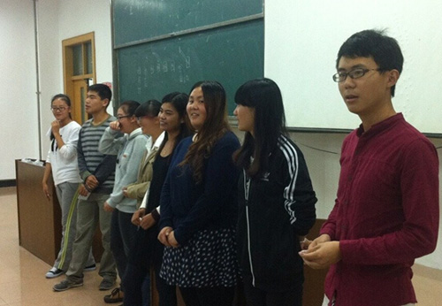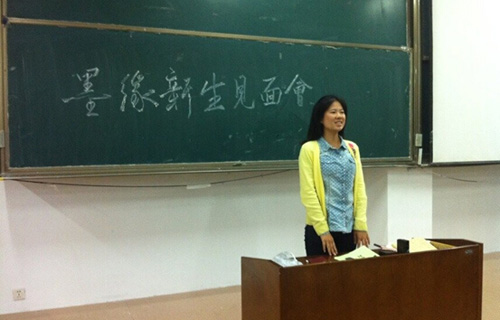 墨缘书法协会在JA106举行新老生见面会,会长张晓蕾带领协会各部门负责人出席本次见面会。