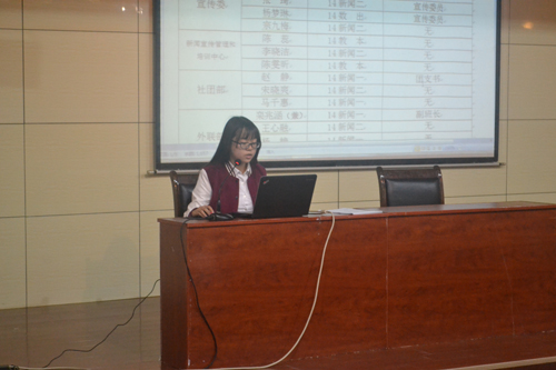随后,肖龙航提出对学生干部加强管理,他列举了一些学生干部的不足之处,让2014级新干事引以为戒,以后工作中不要出现类似的情况。学生干部要学会处理各类关系,比如学习与工作的关系,老师与同学的关系等。最后,肖龙航用“大浪淘沙”提醒大家,希望第十九届新成员时刻规范自己的言行,凸显自己的能力,在大浪淘沙的人才选拔模式中脱颖而出。本次大会的召开预示着老王论坛