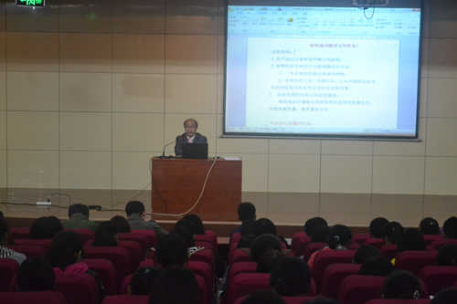 会议开始之前,肖龙航为14级全体新生配发会议记录本,对于会议记录和读书笔记事项作了相关说明。此次教育会的主题是“如何成功度过大学时光”,肖龙航就学院培养的目标和定位与管理模式的关系、生源的现实和毕业的要求等问题进行了讲述,提到“精英理念的灌输与同学思想的自觉和发展定位,向管理要质量,靠质量求生存”。