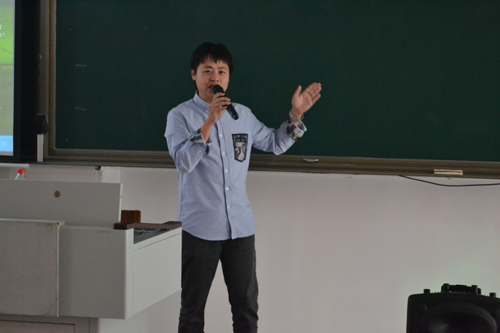 于星海是时光坐标影视传媒的制作总监,曾留学于日本学习动漫,现有自己的动漫制作工作室。其工作室曾参与过《隋唐英雄》、《大风歌》、《神雕侠侣》等百余部电影电视剧的数字特效制作。于星海向同学们介绍了数字特效在影视作品中的地位和作用,他强调影视中的数字特效是实拍镜头所无法做到的,既可以弥补实拍技术的不足,又可以为观众提供一种绚丽的视觉体验。他还以视频的形式给大家展示了数字特效的视觉效果,简要讲述了特效的制作方法和过程。在演讲过程中,他还向同学们介绍了影视特效等数字媒体技术的发展前景以及就业状况,他认为我国影视特效方面的人才还非常缺乏,就业前景比较广阔,但对人才的质量要求较高。于星海鼓励有关专业的同学加强专业学习提高制作水平,未来成为该方面技术过硬的人才。