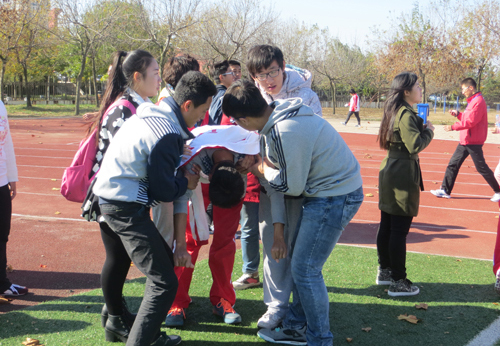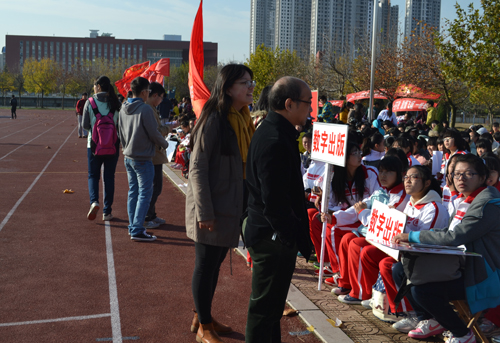 运动会开始后,各部委认真坚守自己岗位,为运动健儿们做好后勤保障。在每个项目进行时,每班同学自行组成啦啦队,为运动健儿呐喊助威,迎接到达终点的同学。在运动会场上,除运动员奋力拼搏的身影外,更不乏跟随运动员奔跑加油的同学们。