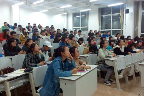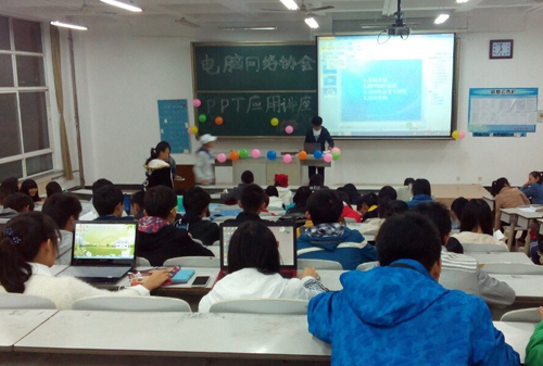 下午6:30,干事们就来到JA102开始布置会场,吹气球、写题目、接待会员……大家忙得不亦乐乎。不一会儿,教室里坐满了人,活动正式开始。此次应用讲座由网络协会会长李玉玺亲自执教。李玉玺幽默亲切的开场白瞬间拉近了与同学们之间的距离,接着,他从PPT的入门知识开始,逐步深入,向同学们展示了一个完整的PPT制作过程。大家一边听,一边记笔记,还有人跟着一起做,不会的就及时发问。会长根据同学们的问题一点一点地拆分讲解,既细致又清晰,同学们听得津津有味。中间休息的时候,会长深情献唱了《菊花台》,会员们也不甘示弱,积极展示自己,赢得一片掌声。短暂娱乐之后,李玉玺穿插着讲了动画制作的软件FLASH,并就动画的效果作了演示。晚上9:00,PPT应用讲座在同学们热烈的掌声中结束了。