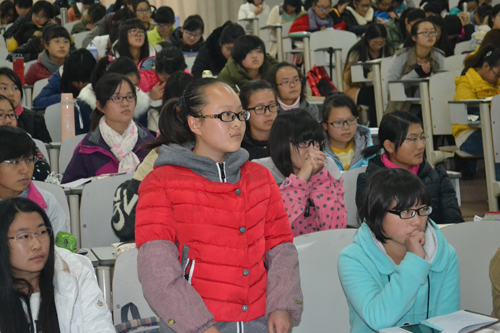 第四届新闻写作培训班第三讲于JE101顺利举行。半岛都市报记者陈平平结合自身经历漫谈新闻采访,带领14级传媒学子走近日照媒体界、近距离感受“真实”的力量。