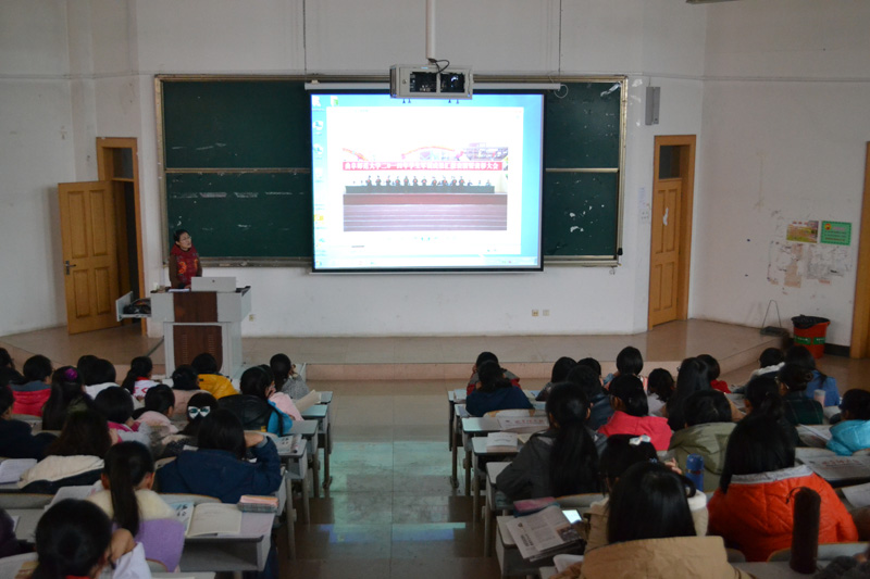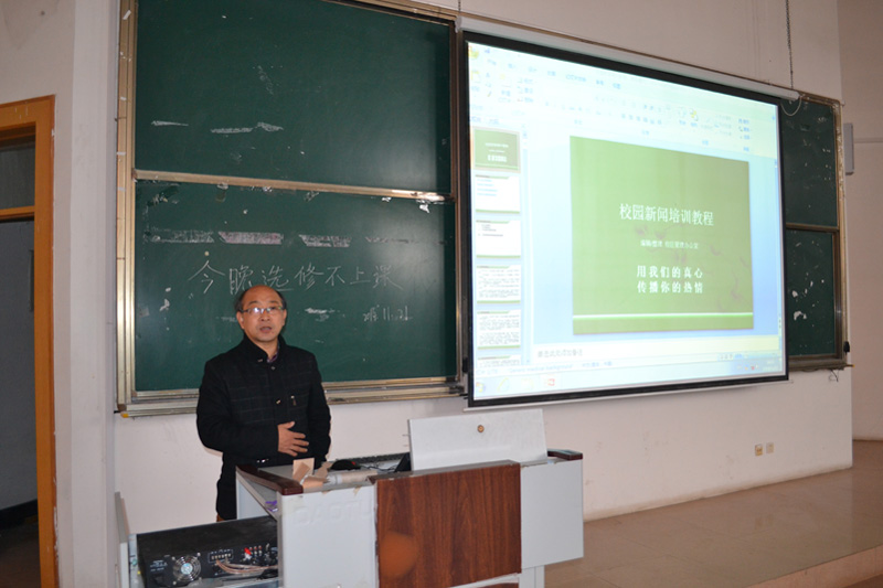 随后,李艳梅具体讲述了如何写作校园新闻,主要围绕“什么是校园新闻”“校园新闻写作的分类及方法”“校园通讯稿”三各方面。她将新闻定义为“新近发生的人们欲知,未知,应知的事实的报道”。校园新闻大致可以分为会议类新闻,竞技类新闻,体育类新闻等,每种新闻都有其各自特点,希望同学们在要素齐全的基础上加以创新。李艳梅结合我校关于学校党风建设的新闻为同学们细致的讲解了如何将会议新闻写得出彩。