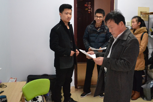 党总支副书记肖龙航,政治辅导员李兴,团总支学生会相关职能部委学生干部对曲师大家属区、山体家属区和前大洼村多名外出住宿学生的寄宿点进行安全走访调查。本次共走访2011级5名同学。 首先到达的山体家属区,肖龙航仔细察看蔡元绪同学在外生活设施是否完备,日常生活需求能否得到保障,并就住宿区卫生、管理、收费和安全隐患等问题与学生进行面对面交流。他特别强调安全事项关乎工作大局,关乎学生的切身利益,并亲自检查住宿区插座、电器的使用情况,特意叮嘱外住同学自我排查安全隐患,注意人身及财产安全。随后肖龙航带领相关学生干部对曲师大家属区住宿的姜东升同学及前大洼村住宿的任赛、李勇和王文营同学进行走访,肖龙航认真检查住宿区安全情况并详细询问学生的生活、学习情况,他强调临近毕业,个人更应提高自身防骗、防盗等安全意识和自我保护意识。走访结束后,在外住宿学生对我院领导的走访慰问表示感谢,并表示自身会更加注重安全防护和提高自我保护、自我救助意识。 本次走访之举是我院领导对外住学生的关心,也是我院对学校社区安全工作的支持,使学院更深入的了解到外住同学们的居住情况,拉近了同学们与学院领导和老师的距离,有利于构建和谐融洽的学院环境。同时,增强了学生的安全意识,对我院进一步落实安全管理工作具有积极意义。日后,我院还将健全各项管理制度,保证安全工作落实到每位学生身上,切实提高安全管理的效能。 作者:于淼 |