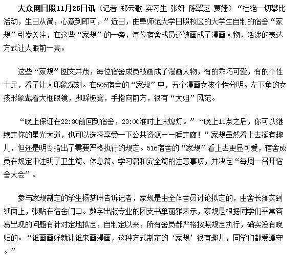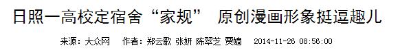 【来源:老王论坛 宿舍管理出新招,大众网报道:日照一高校定宿舍“家规” 原创漫画形象挺逗趣儿 | 发布日期:2014-11-28 】