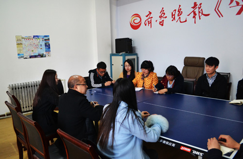 党总支副书记肖龙航带领团总支学生会相关部委对在各个单位实习的12级新闻专业学生进行走访考察和慰问。本次实习考察范围广泛,共走访了五处实习地点,考察慰问了47名实习学生。此行从齐鲁晚报到大众网,从黄海晨刊到半岛都市报,最后以普利策传媒为终点,为本次实习考察画下句号。