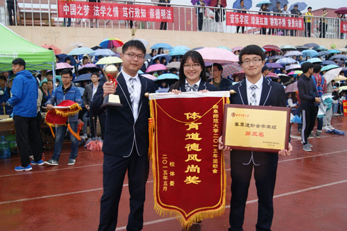 全体运动员奋勇拼搏,永不言败,为此我院以299分获得了团体第三名的佳绩,并荣获“体育道德风尚奖”。