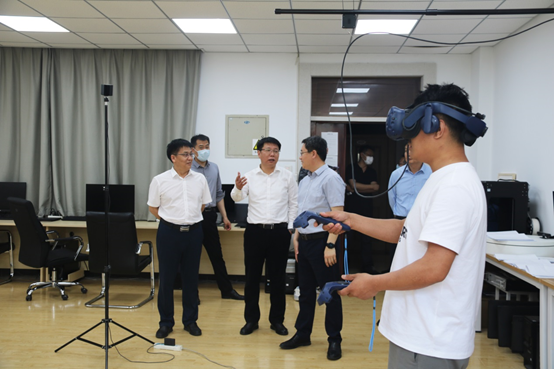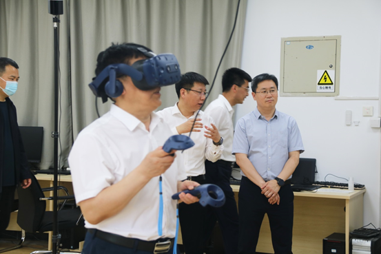 考察伊始,驻地各级领导们到我院智慧教室进行参观,对智慧教室的使用情况及适用课程的相关问题进行详细了解。随后,领导们到我院虚拟现实教育实验室进行参观,亲身体验VR虚拟技术。驻地各级领导们高度肯定了我院重视教学工作的积极态度,并指出VR技术正蓬勃发展,应予以高度关注,要充分发挥智慧教室作用,为我院人才培养打好坚实基础,为学校高质量发展增加新动能。