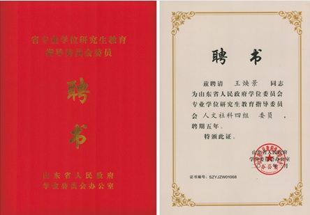 热烈祝贺我院王焕景教授入选山东省人民政府学位委员会第一届专业学位研究生教育指导委员会,担任人文社科组别委员。