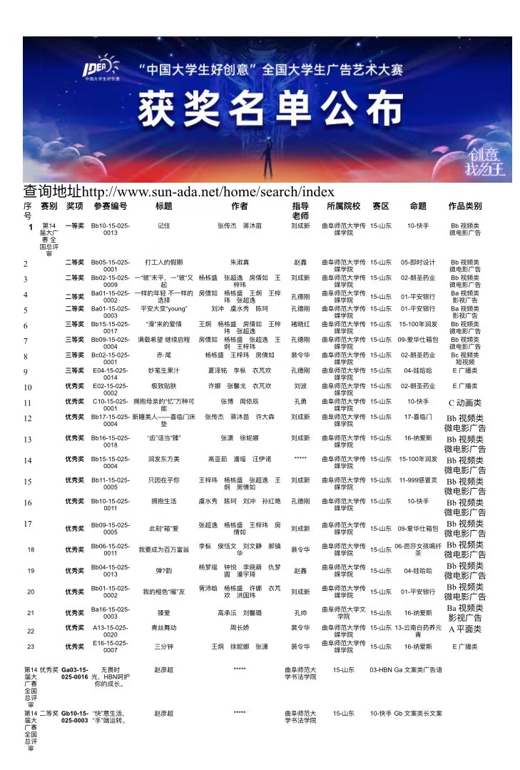 大广赛赛事举办规模大、覆盖高校广、参与师生人数多,且有较大社会影响力。传媒师生在大广赛中多次斩获国奖,体现了我院教学创新性改革的发展、学生素质的提高。