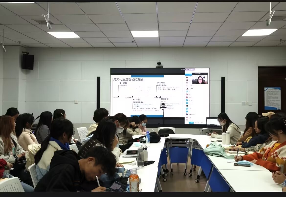 张耀兰老师以“二元”媒介作为话题切入点,从研究概况、研究理论、研究问题、研究方法、研究发现等方面展开讲解。在研究概况方面重点讲解了学术旅居者和传播与跨文化适应的概念以及适用领域。研究理论使用上,张耀兰老师从历史纵向发展的角度,论述了有关跨文化适应理论发展的四个阶段。研究方法层面,张耀兰老师表示混合研究比较常用,并从自我民族志、深度访谈、问卷调查三个层次展开详细介绍。对于研究发现,张耀兰老师总结,“二元”媒介情境均有利于学术旅居者的心理适应,语言能力对于各类适应状态具有基础性作用等。此次课堂讲解实现了线上线下的良好互动,现场学生与张耀兰老师在现场讨论激烈,深入浅出,学生们表示受益匪浅。