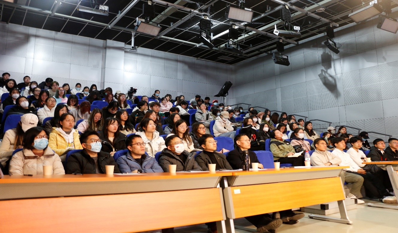 教授、博士生导师刘成新,教授张维刚,新闻系主任孙浩以及骨干教师代表出席讲座,部分研究生与本科生参加。