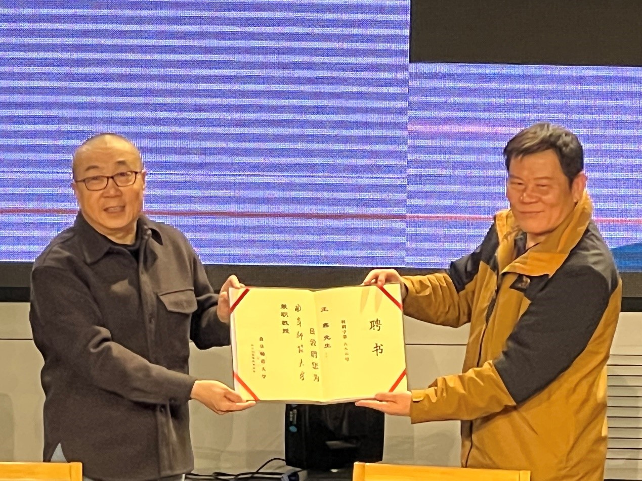 在仪式上,孙浩对王骞先生进行介绍、并对其莅临表示热烈的欢迎与感谢。刘成新对于王骞先生丰富的从业经历和众多优秀的影视作品作简要介绍,并为其颁发兼职教授聘书。