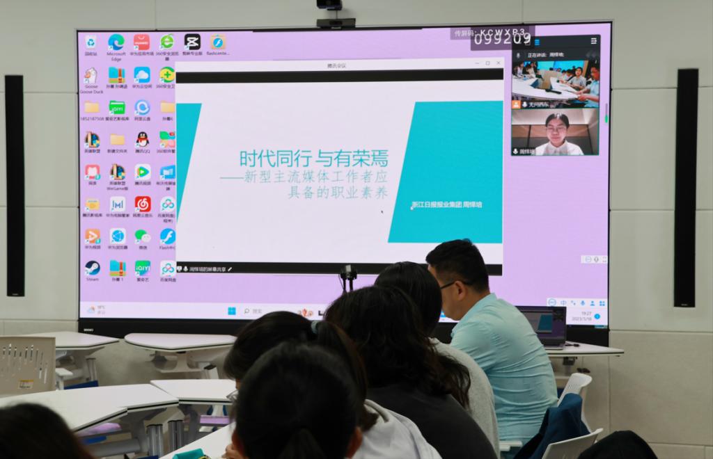 于JC813举办青年学者讲堂第三季第三讲,通过线上连线方式邀请到北京大学文学博士、浙江日报报业集团潮新闻客户端编辑周怿培,开展“与时代同行,与有荣焉——新型主流媒体工作者应具备的职业素养”为主题的讲座。2022级新闻学专业学生参与讲座。讲座由老王论坛
