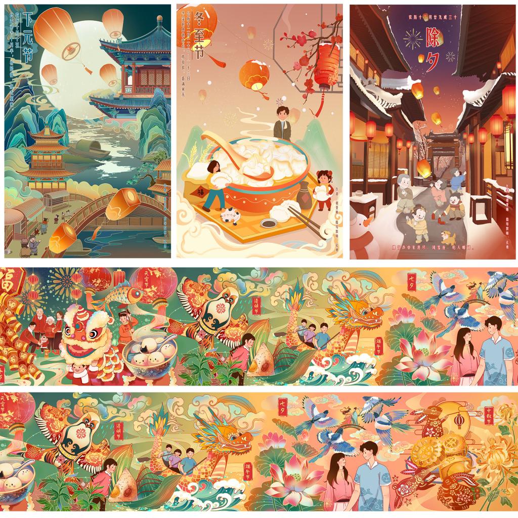 重视中华优秀传统文化的教育与传承,引导学生在实践中汲取传统文化资源力量,进一步树立文化自信。本次系列插画作品的创作,切实增强了传媒学子的文化意识,彰显了中国传统节日文化的独特魅力与深厚影响力。