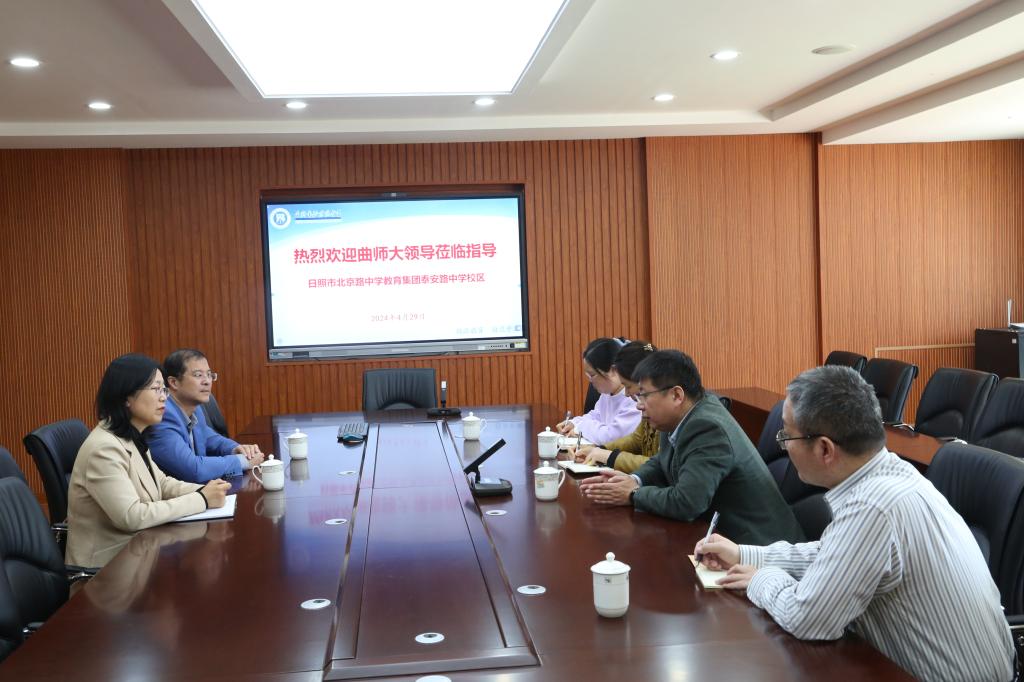院长王焕景、团委书记张守荣、辅导员武莉华前往北京路中学泰安路校区看望实习学生。北京路中学副校长梁文、刘磊热情接待。双方就实习工作展开深入交流。