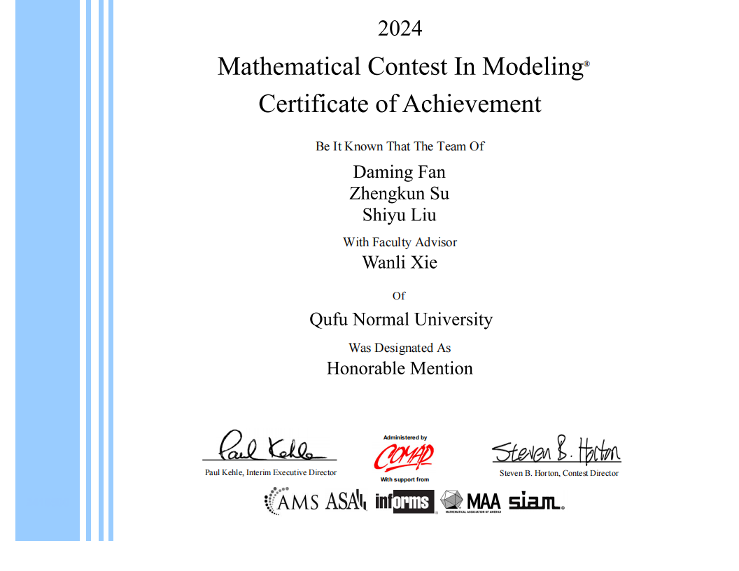 此次成绩的取得不仅培养了学生科研创新、思维创新、能力创新的综合创新能力,还在学院内树立起了积极参赛、开拓创新、提高数学思维的优秀榜样,有效推进学院学生数理思维和探索精神的发展,营造了“以赛促教、以赛促创、赛教融合”的良好氛围。