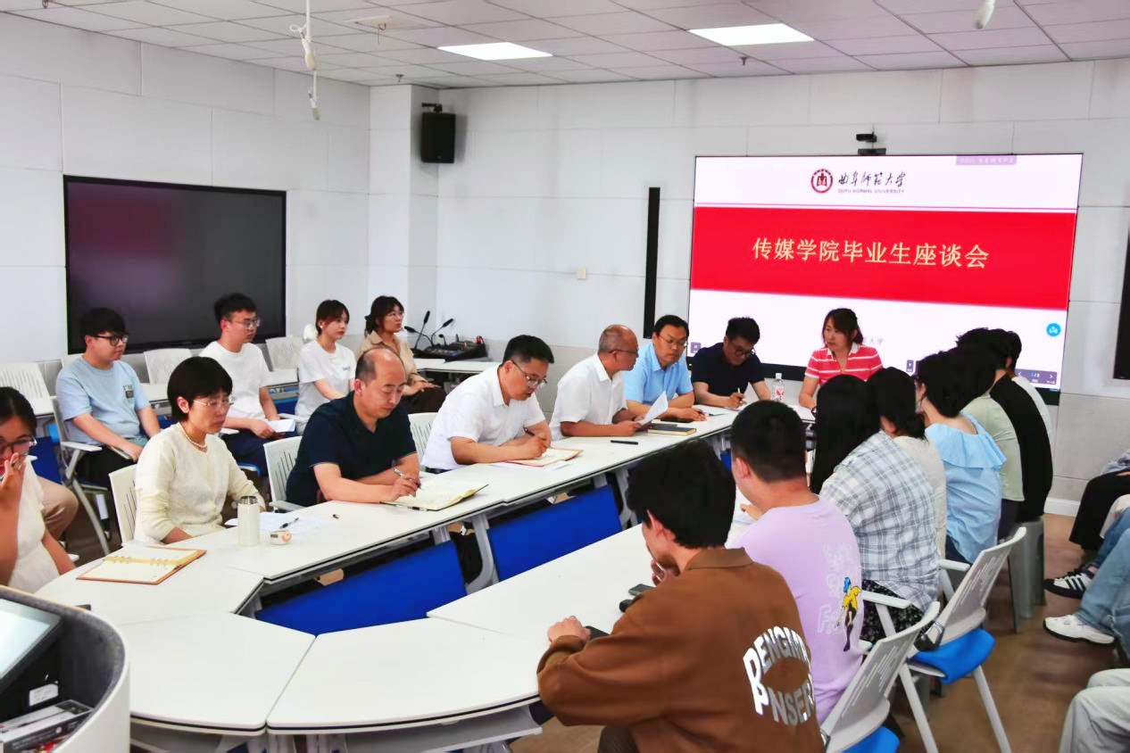 于JC813顺利召开2025届毕业生座谈会。学院党委书记田维柱、党委副书记田荣林、副院长赵可云、副院长刘波、团委书记张守荣、学习科学与技术教研室主任吴运明、新闻教研室主任卢长春、数字媒体艺术系副主任孔勇出席此次会议,部分毕业生参加此次座谈会。