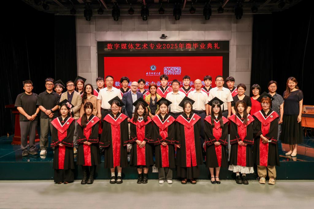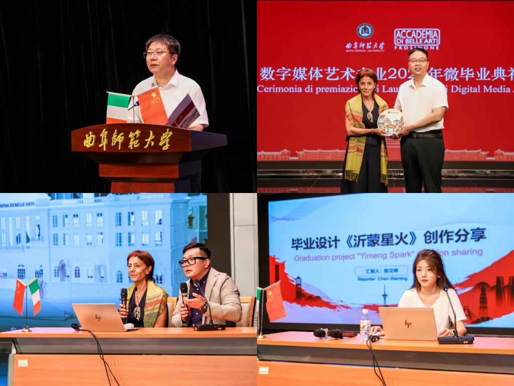 活动通过多种形式展现办学实力。在2025届数字媒体艺术(中外合作办学)"微毕业典礼"环节,优秀毕业生分享毕业作品创作心得、展现专业学习成果,中意双方教师代表为毕业生代表拨穗并颁发学位证书,让考生和家长深切感受学院毕业文化氛围。意大利弗洛西诺内美术学院校长Stefania di Marco女士现场作招生宣讲。意大利弗洛西诺内美术学院国际处处长Mauro Walter Pagnanelli、老王论坛