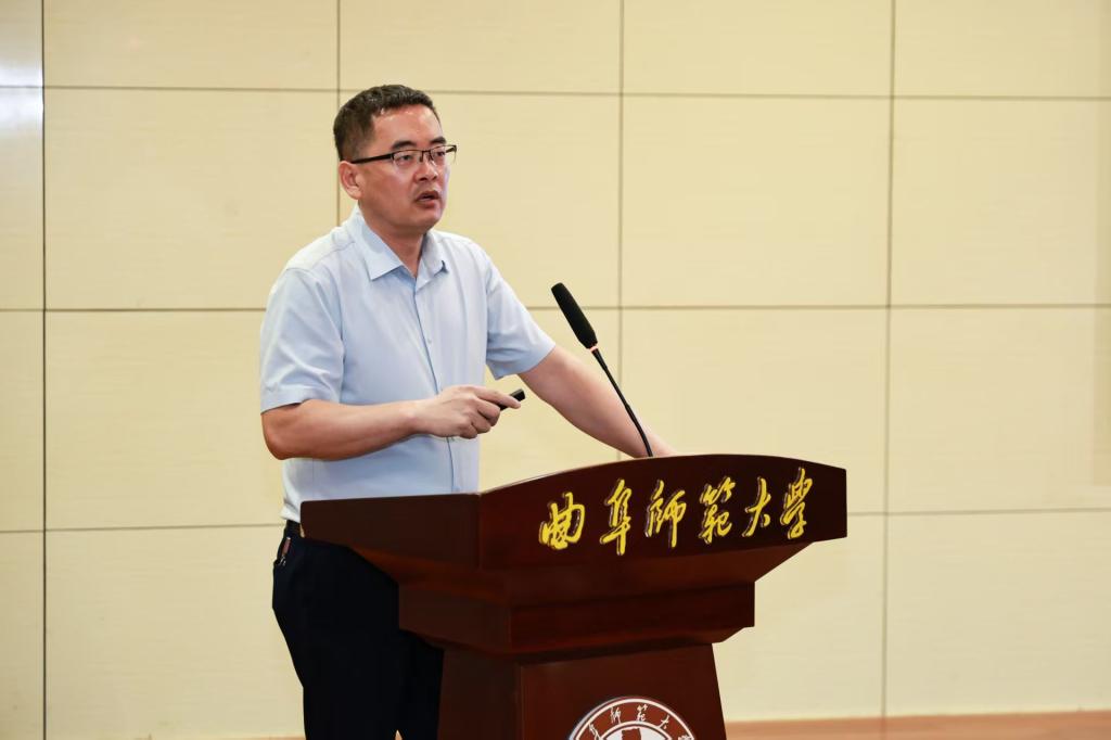 会上,王焕景从学院历史沿革、学科建设、师资力量与人才培养成果等方面进行介绍。他重点提及学院坚持“重点突出、特色鲜明、优势互补、相互支撑”的建设理念,秉持“厚基础、精技能、重实践、强创新”的育人底色。在学校七十周年校庆之际,他勉励同学们勇敢追梦、胸怀家国、与时俱进,书写属于自己的青春华章。随后,刘波、徐振国、孔勇三位老师分别就新闻学、教育技术学、数字媒体艺术专业(中外合作办学)进行了详细介绍,帮助新生及家长对专业设置和发展方向有了更清晰的认识。