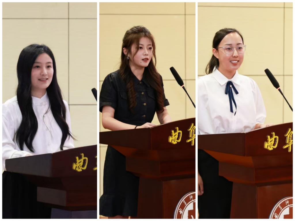 学生党员奋进标兵、科技创新活动先进个人、2021级本科生及2025级研究生新生陈文婷和优秀校友代表、日照市商业学校教师卢萌分别分享了自己的学习成长经历和职业成长故事,为新生提供了宝贵的经验借鉴。此外,2025级新生代表王奕佳同学表达了对大学生活的期待和规划,展现出新一届传媒学子的蓬勃朝气。