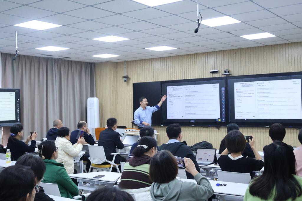 李逢庆围绕“数字中国”与“数字文化”建设背景,结合国家教育数字化战略布局和人工智能助推教育变革的政策导向,深入阐释了智能技术如何赋能区域教育高质量发展,并提出教育须积极回应数智融合带来的新挑战与新机遇。在实践层面,李逢庆以莘县二中、临沂十一中等学校的智慧课堂建设为例,详细介绍了从混合式教学到AI同教课堂的演进路径,以及“师资·同教”等专属大模型的开发与应用,生动展现了人机协同教学、数据驱动决策在推动课堂转型、实现“有为、有位、有味”学校改革中的重要作用。