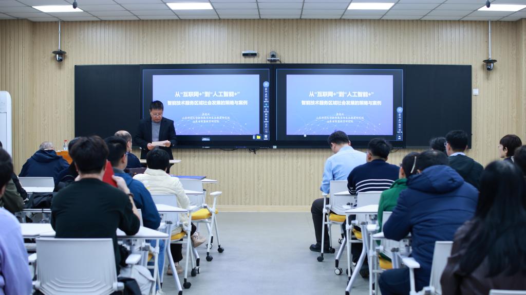 教师作题为“智能技术服务区域社会发展的策略与案例”的专题报告。