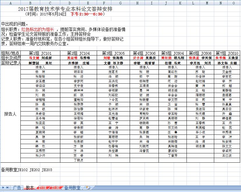 2稿 最新 2017届各专业答辩安排 5月16 开题修改稿带研究生.xls