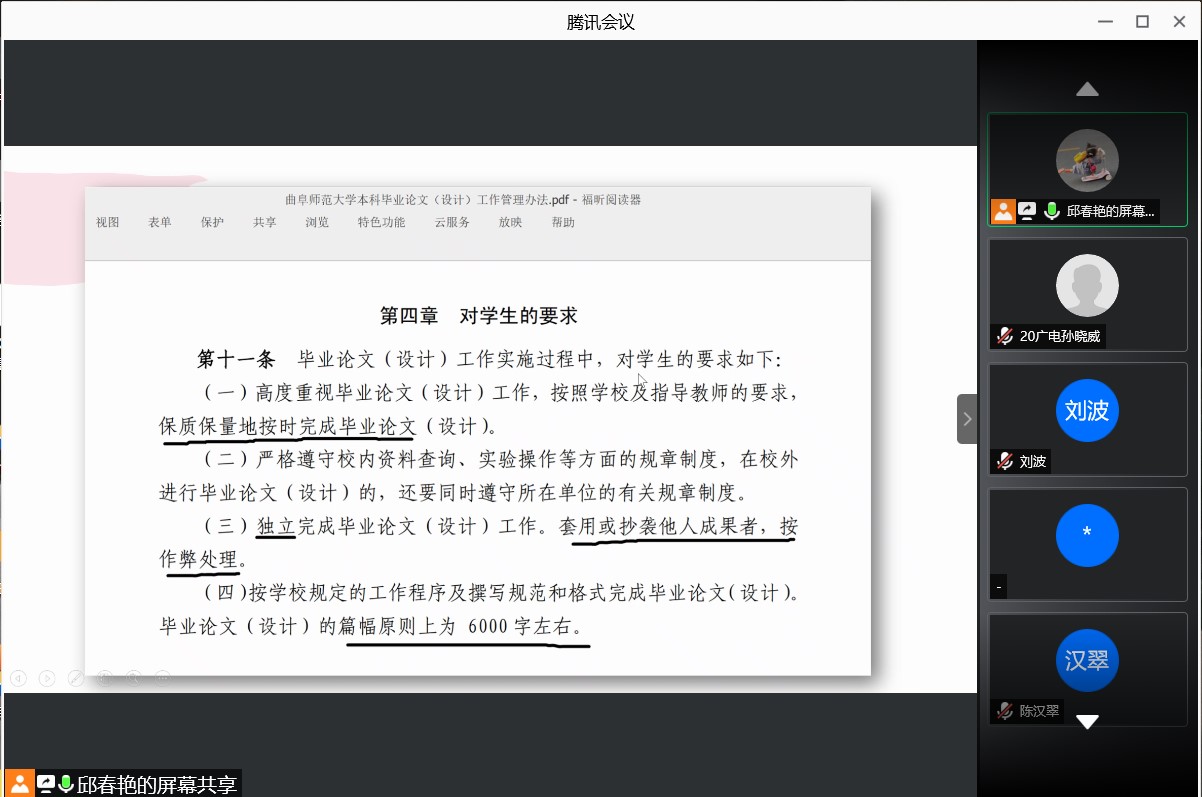 本次毕业论文写作规范指导线上会议的召开,有助于2017级传媒学子明确毕业论文写作规范,提高对毕业论文重要性的认识,为学院2021届毕业生顺利毕业和尽快就业奠定了基础。