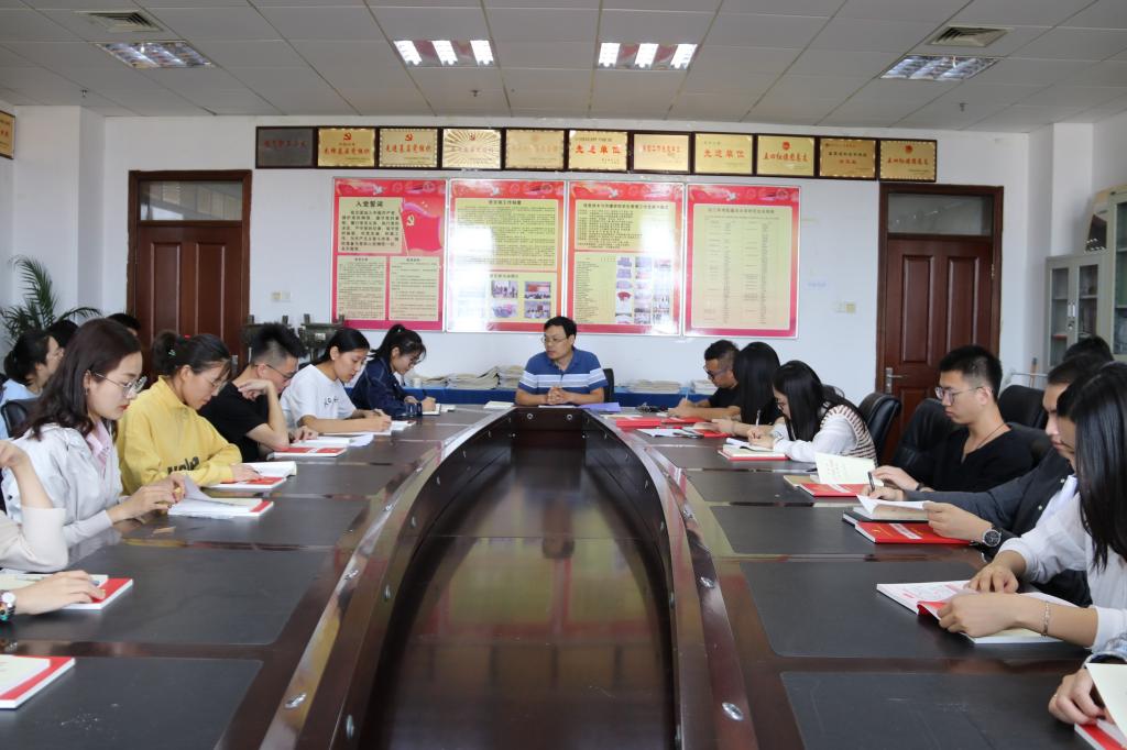 委员会《关于在全校开展“不忘初心、牢记使命”主题教育的实施方案》(校委字[2019]53号)文件精神和学校党委书记戚万学“不忘初心、牢记使命”主题教育工作会议上的讲话精神,在传达学校党委、学院党委有关文件、会议精神时强调主题教育既要注重集中研讨,又要加强个人自学。此外,还将开展组织专题教育、志愿服务等活动。并对全体同志提出几点要求,一是落实主题教育必须要进行全面深入的调查研究,对学习内容严格落实,不打折扣,规定动作要严格完成。二是落实主题教育必须要深刻剖析自身问题,把主题教育学习作为锤炼政治品格、政治担当的洗礼。三是落实主题教育必须要对自身问题严格整改落实,要做到分类施策,精准施策。