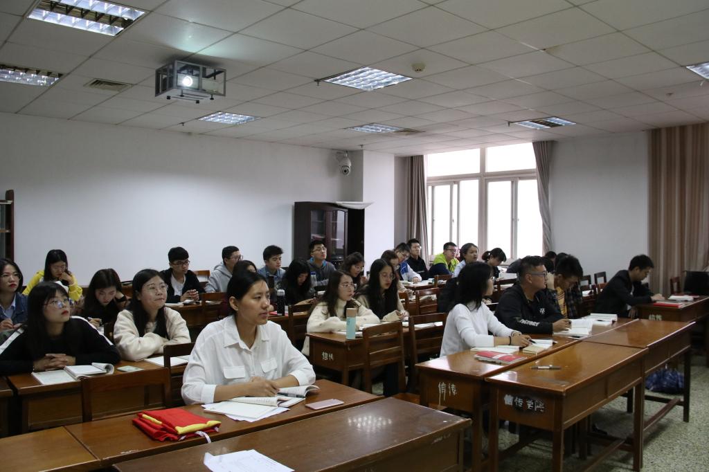 党课内容共包括三部分,分别为“铭记红色历史,凝聚前进动力”,“坚定四个自信,把握前进方向”,“勇于拼搏奋斗,实现前进梦想”,从以上三个层面详细解读了总书记此次讲话的深远影响和重大意义。吴运明同志强调总书记的讲话全面总结了七十年来新中国取得的伟大成就,汇聚起近14亿中国人民团结奋斗的强大力量,国家和民族的命运与我们每一个人紧紧的联系在一起,国家的荣辱兴衰与我们每一个人休戚与共,息息相关,尤其作为新时代研究生更应该关心祖国和民族的命运,明确肩负的历史使命。吴运明同志要求大家多关心国家大事,了解当今世界发展的趋势,尤其是中国在国际上所处的环境,敏锐观察和判断国际动向,向着国际上需要的人才战略目标迈进,从而实现振兴中华的理想。