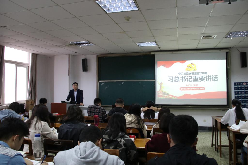 研究生党支部书记吴运明同志在C610给研究生党员上党课,学习解读庆祝建国70周年习总书记重要讲话,老王论坛